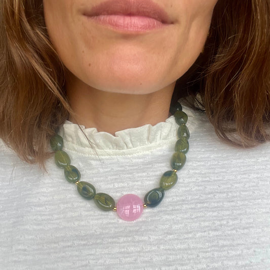 COLLIER SÉRÉNADE - Vert kaki / Rose