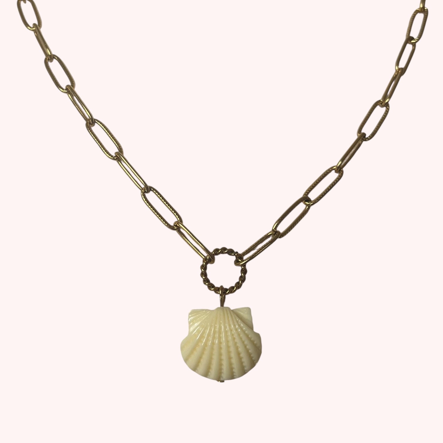 Ce collier d'une jolie longueur se compose d’une jolie chaîne dorée en acier inoxydable, fine et raffinée, ornée d’un délicat coquillage écru. Un bijou élégant et discret, à porter aussi bien au quotidien que pour une occasion spéciale.